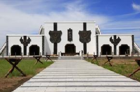 大汗行宮宮殿區:占地30萬平方米,宮殿范圍內由宏偉壯闊的宮門、代表民族信仰的長生天牌坊、戰場上的金戈鐵馬的還原場景、獨具特色的議事金帳、具有強烈宗教色彩并象征神在其位的敖包和集佛教、道教、薩滿教于一體的祭天臺等建筑共同構成景區中軸線。宮墻左側為元朝的發展史,記載了蒙古民族從原始逐水草而居的游牧生活到成吉思汗開國和元朝建立并發展壯大創造一片盛世的景象。生動的刻畫出在這茫茫大草原中曾經興旺發達雄霸百年的蒙古民族征服世界,并創立了世界上最大疆域版圖的元朝在其發展的過程中部分最具代表性的歷史場景。右側是由600個蒙古包組成的兵營,展示了蒙古特色軍帳文化。